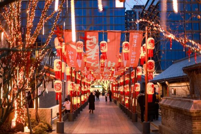 暖黄色的灯光在傍晚时分亮起,整条长廊仿佛一条流动的光河。站在其中,抬头望去,灯笼层层叠叠延伸至视线尽头,按下快门,就是一张充满故事感的国风大片。