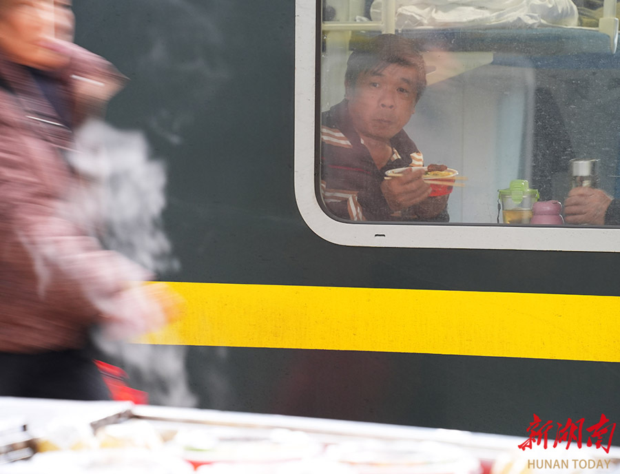 2月11日,一列由广州白云开来的列车在衡阳火车站暂时停留。当天白班时段(8:00-19:30)到站旅客10464人次,铁路运输进入节前繁忙阶段。 曹正平 王晓兰 摄影报道(湖南图片库)