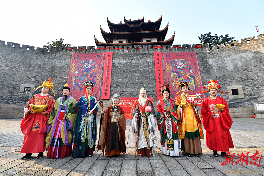 2月11日,“八大福气使者”亮相长沙天心阁,为游客送福字。当天,由新湖南客户端指导发起,长沙市芙蓉区文旅体局主办,湖南省圆点美术馆承办的“开门见喜 福满星城”2026长沙新年画城市共生计划欢乐开启。“八大福气使者”通过巡游派福,将非遗年画艺术融入城市空间,为市民游客带来新春文化新体验。湖南日报全媒体记者 田超 童臻熙 摄影报道