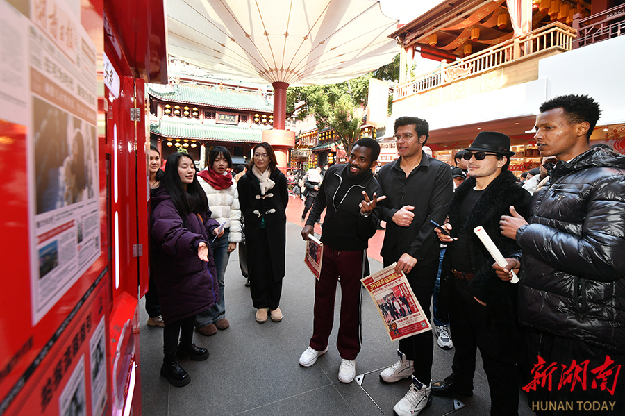 2月11日,长沙市坡子街火宫殿,外国友人在体验湖南日报拍报机。当天,由新湖南客户端指导发起,长沙市芙蓉区文旅体局主办,湖南省圆点美术馆承办的“开门见喜 福满星城”2026长沙新年画城市共生计划欢乐开启。“八大福气使者”通过巡游派福,将非遗年画艺术融入城市空间,为市民游客带来新春文化新体验。湖南日报全媒体记者 田超 童臻熙 摄影报道