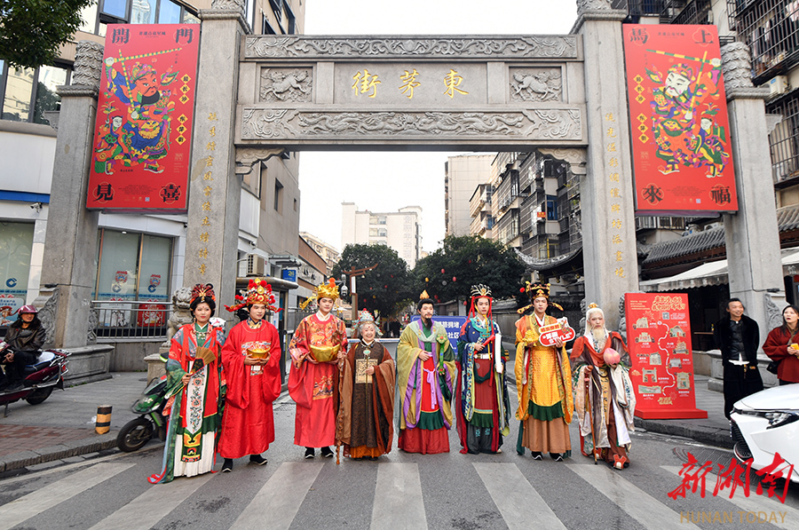2月11日,“八大福气使者”亮相长沙市芙蓉区东茅街。当天,由新湖南客户端指导发起,长沙市芙蓉区文旅体局主办,湖南省圆点美术馆承办的“开门见喜 福满星城”2026长沙新年画城市共生计划欢乐开启。“八大福气使者”通过巡游派福,将非遗年画艺术融入城市空间,为市民游客带来新春文化新体验。湖南日报全媒体记者 田超 童臻熙 摄影报道