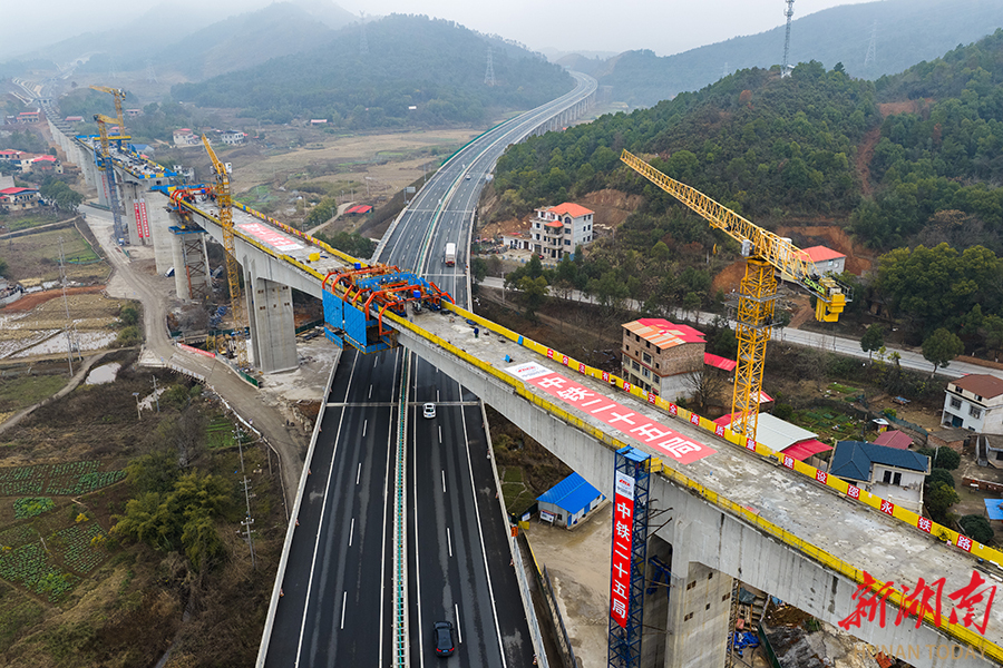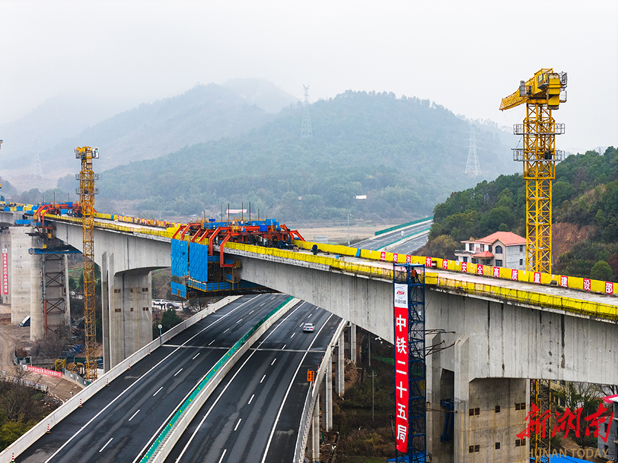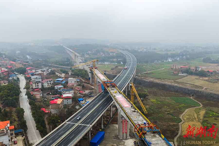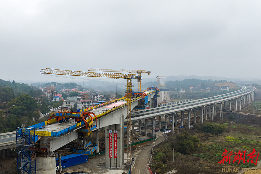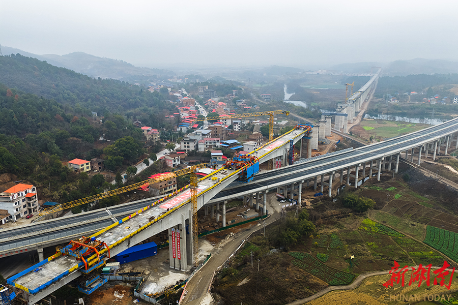 2月11日,位于永州市境内的邵永高铁跨芦洪江特大桥136米连续梁顺利合龙。至此,邵永高铁永州段连续梁全部实现合龙,为下一步加快架梁施工创造有利条件。邵永高铁全长约96公里,设计时速350公里,是国家“八纵八横”高铁网呼南通道的重要组成部分。项目建成后,对完善区域铁路网布局、促进中部地区高质量发展具有重要意义。雷中祥 蒋凌志 摄影报道(湖南图片库)