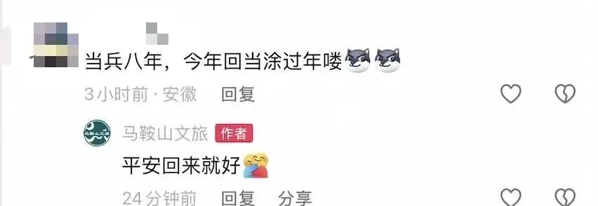 可以看到,各地文旅账号不再只是一个板着脸的、机械“推介景点”的窗口,而是充当了“家乡代言人”的角色,它们主动回应在外游子的春节思乡情绪。有人因家人生病只能在医院过年,得到了文旅部门一句真诚的“一切都会好的,大家都平平安安的”;有人当兵多年回家过年,被送上“平安归来就好”的问候,一句简单的问候都能让人心头一热。