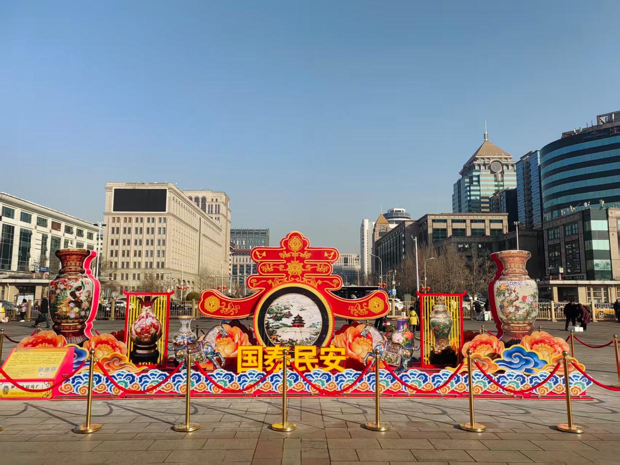 北京站办携手国家级非遗保护基地、中华老字号北京市珐琅厂,于2月9日起在北京站广场布置马年新春彩灯景观,融景泰蓝非遗工艺产品元素与现代光影技术于一体,打造珐琅生辉、骏马呈祥的特色灯组,将非遗匠心与生肖吉庆完美融合。