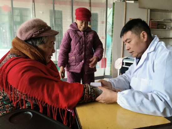 东西刚放下,蒋衡生顾不上拍去身上的尘土,也来不及喝一口热水,当即脱下外套,穿上白大褂,在老人们围坐烤火的大厅里,就地支起了临时诊疗“摊子”。