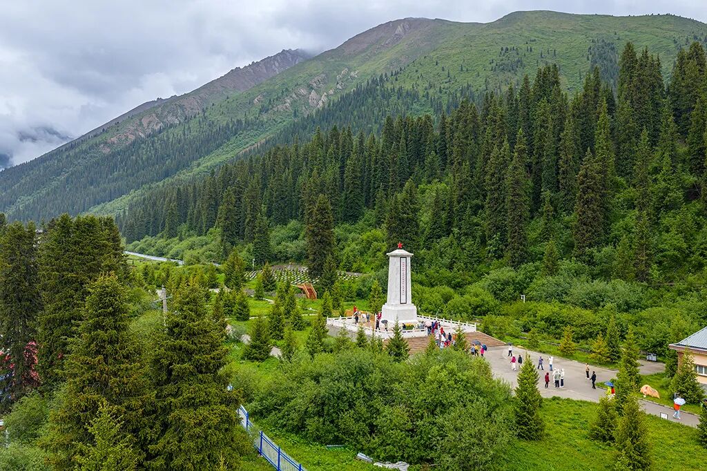 独库公路旁的烈士纪念公园,铭记着为修建这条“英雄之路”而献出生命的人们。