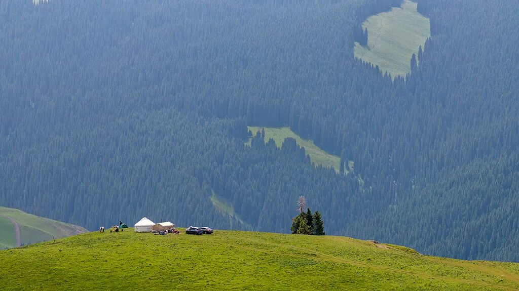 喀拉峻大草原上,起伏的山丘如同美人曼妙的身姿,被誉为“人体草原”。