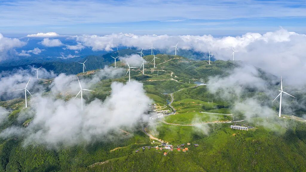 桂东万洋山,巨大的风车在翻涌的云海中若隐若现。