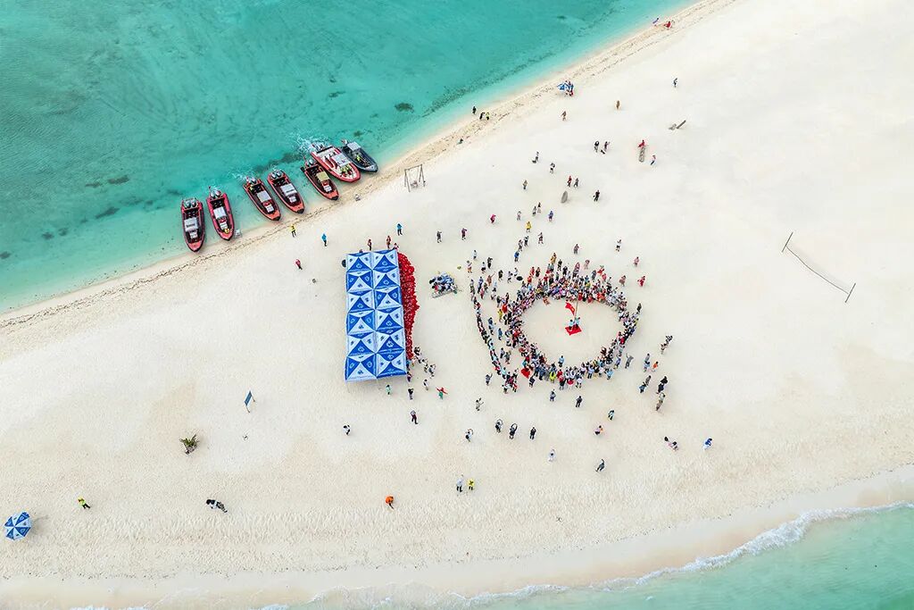 碧海蓝天之间,鲜艳的五星红旗在全富岛上冉冉升起。