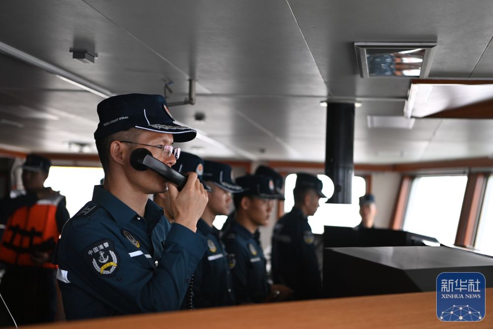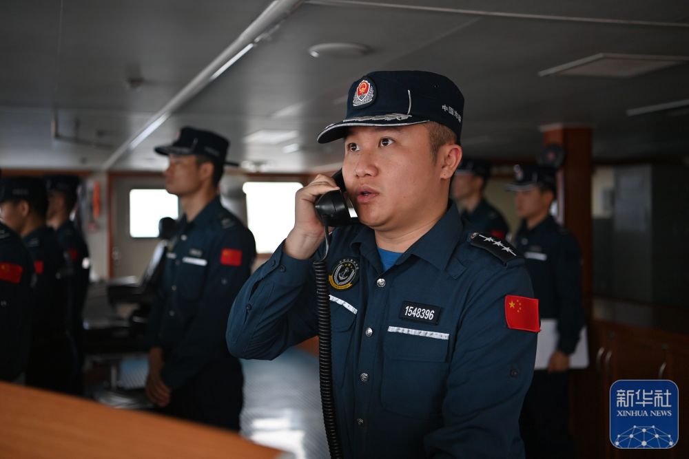 这是中国海警万山舰执法员在指挥舰艇航行(2月6日摄)。新华社发(翟一凡摄)