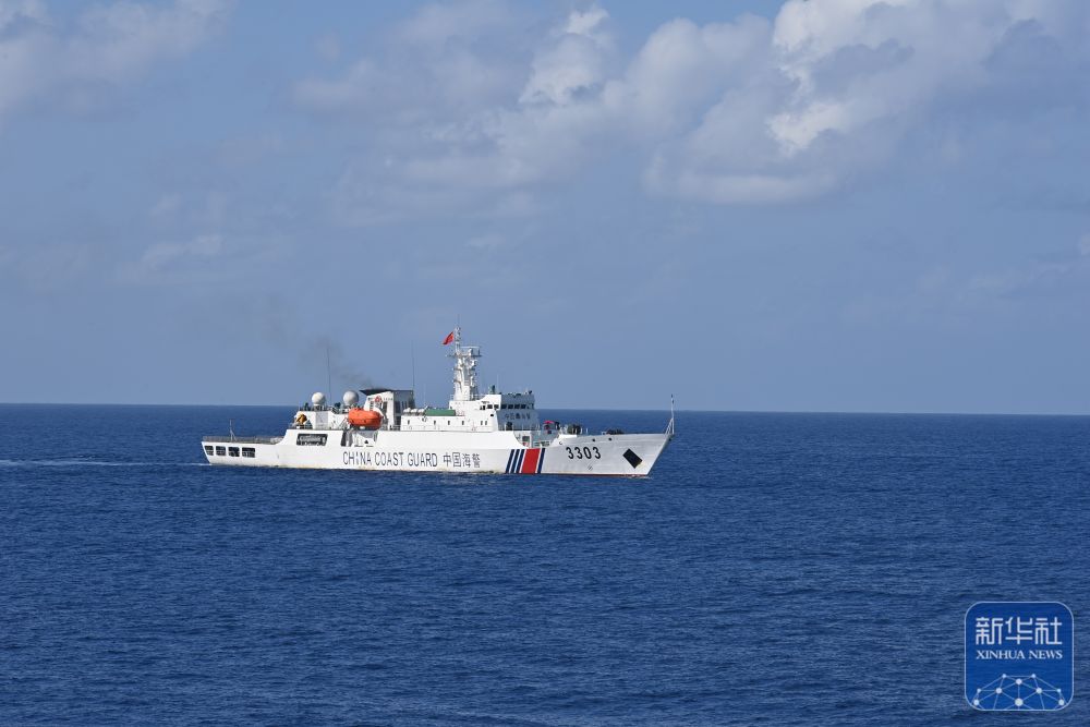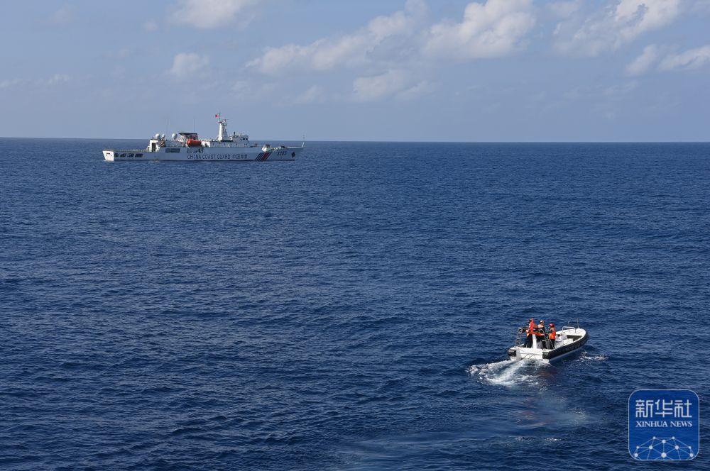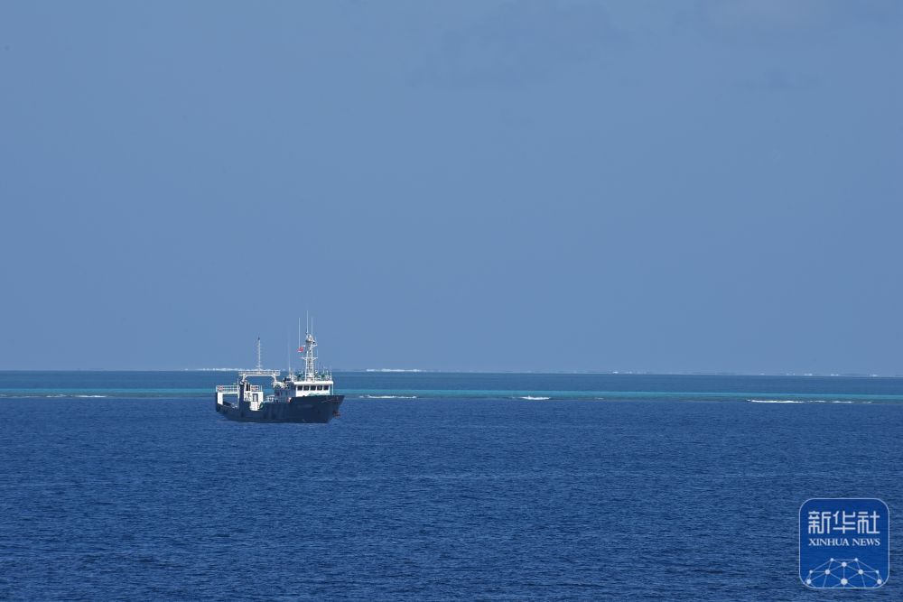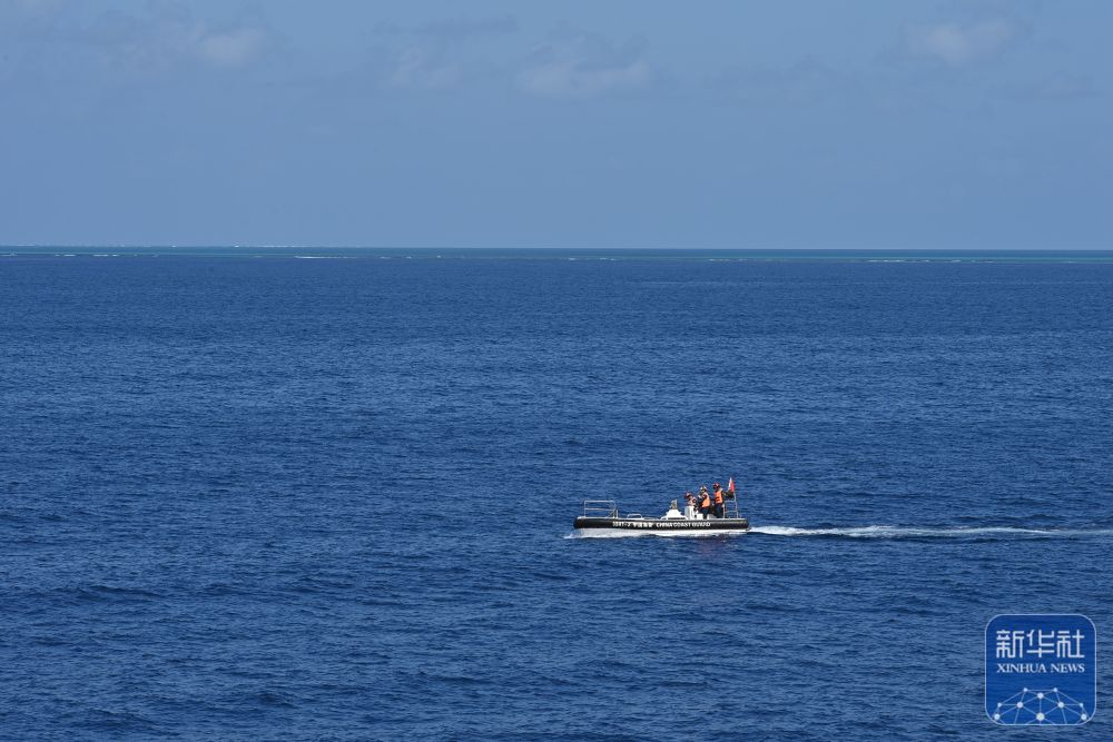 这是中国海警中沙舰在黄岩岛海域巡航(2月4日摄)。新华社发(翟一凡摄)