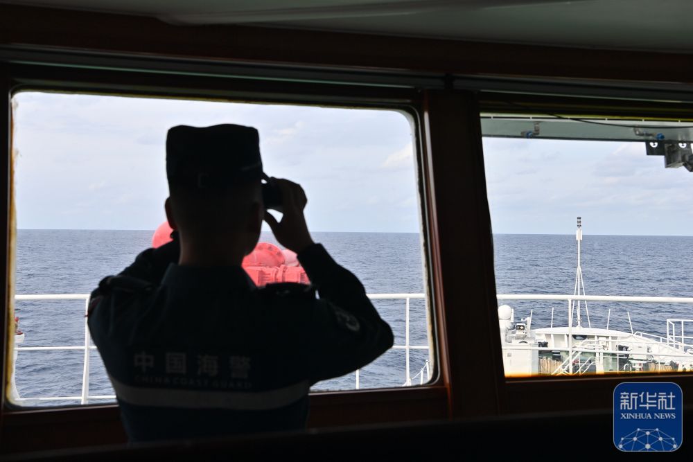 这是中国海警万山舰执法员在进行观察瞭望(2月6日摄)。新华社发(翟一凡摄)