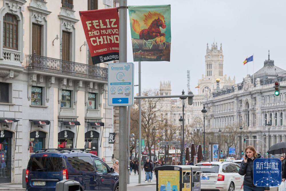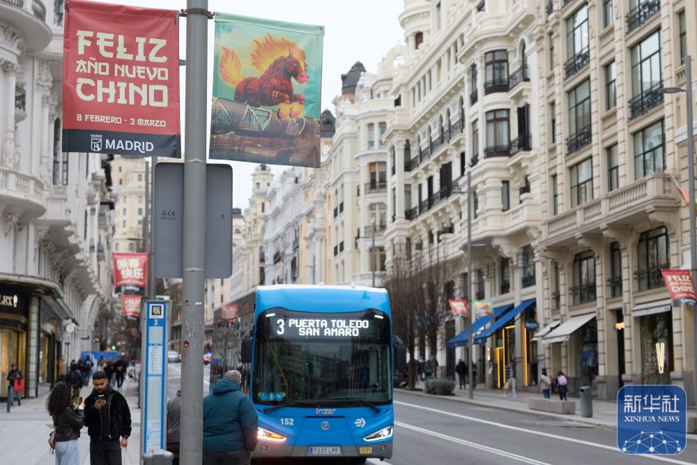↑这是2月11日在西班牙马德里街头拍摄的中国春节主题视频。