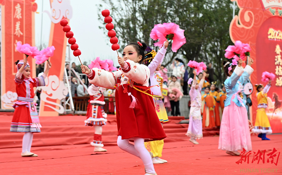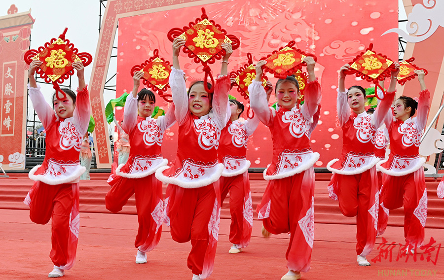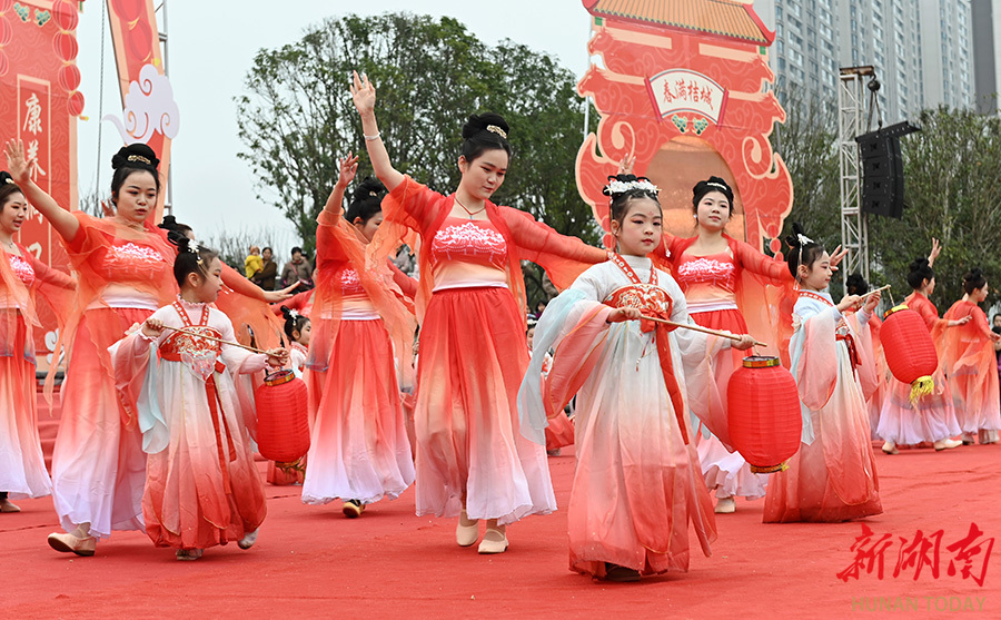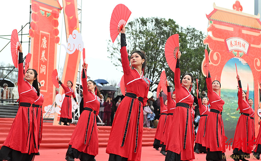 2月12日,洞口县文昌街道佳和社区,演员在表演文艺节目。春节临近,该县组织多支文艺团队深入基层开展“我们的节日·春节”文化惠民演出,丰富群众文化生活,让浓浓年味走进千家万户。滕治中 摄(湖南图片库)