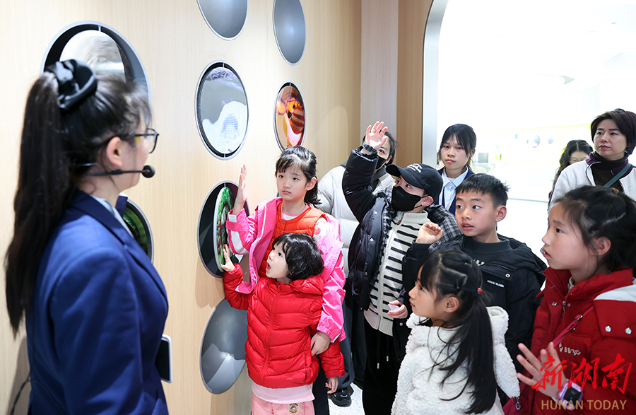 2月12日,长沙爱尔眼科医院眼健康科普教育基地内,讲解员为孩子们讲解眼科知识。寒假期间,该院已举办56场趣味研学活动,帮助近万名青少年掌握科学用眼知识。 湖南日报全媒体记者 赵持 通讯员 周巧 摄影报道