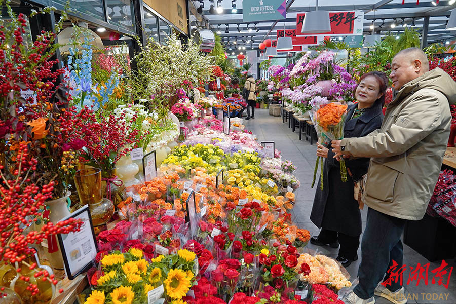 2月12日,市民在长沙三湘花卉市场选购各色年宵花。春节临近,长沙各大鲜花市场暖意融融,各类应季鲜花竞相绽放,市民纷纷选购装点家居,为新春佳节增添喜庆氛围。 湖南日报全媒体记者 徐行 摄