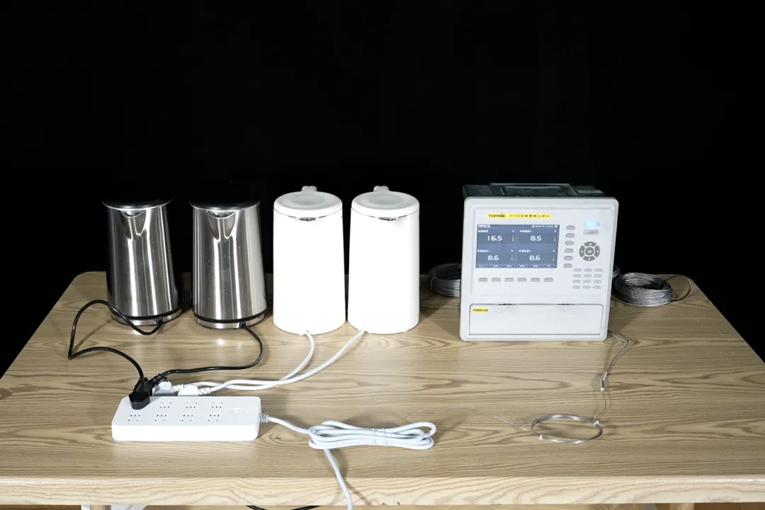 1台电热水壶正在工作。图源:南京消防试验二