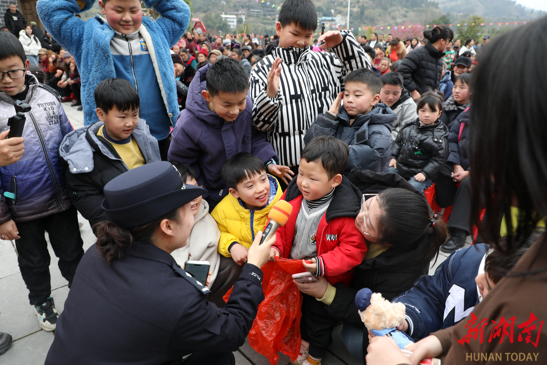 新湖南客户端2月13日讯(通讯员 彭昌剑 张红军)2月12日,湘西土家族苗族自治州保靖县迁陵镇踏梯村张灯结彩、喜气洋洋,2026年新春团圆联欢会如期举行,村民们欢聚一堂,共庆新春、共话美好。借此群众聚集契机,保靖公安联合县委政法委、县司法局,在联欢会现场开展交通安全、反诈、国家安全等系列宣传活动,将平安知识送到群众身边。