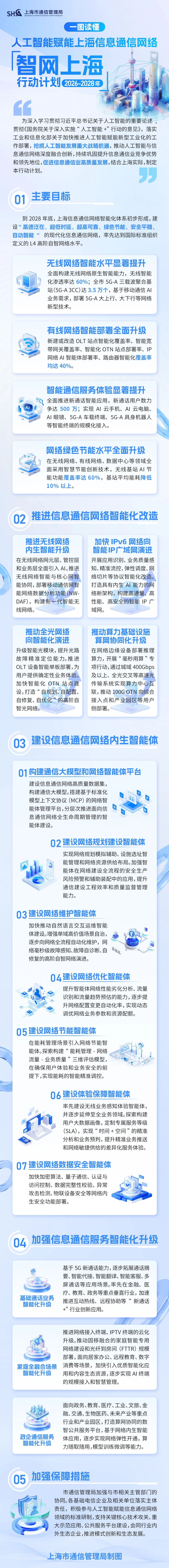 2月13日,澎湃新闻记者从上海市通信管理局获悉,《人工智能赋能上海信息通信网络“智网上海”行动计划(2026-2028年)》(简称《行动计划》)正式发布。
