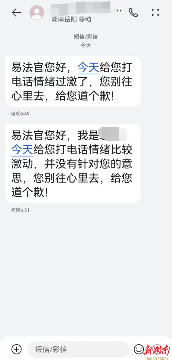 事后,赵某儿子通过短信的形式向执行法官表达了深深的歉意:“法官,我不该对您恶语相向,并没有针对您的意思,您别往心里去,给您道个歉!”