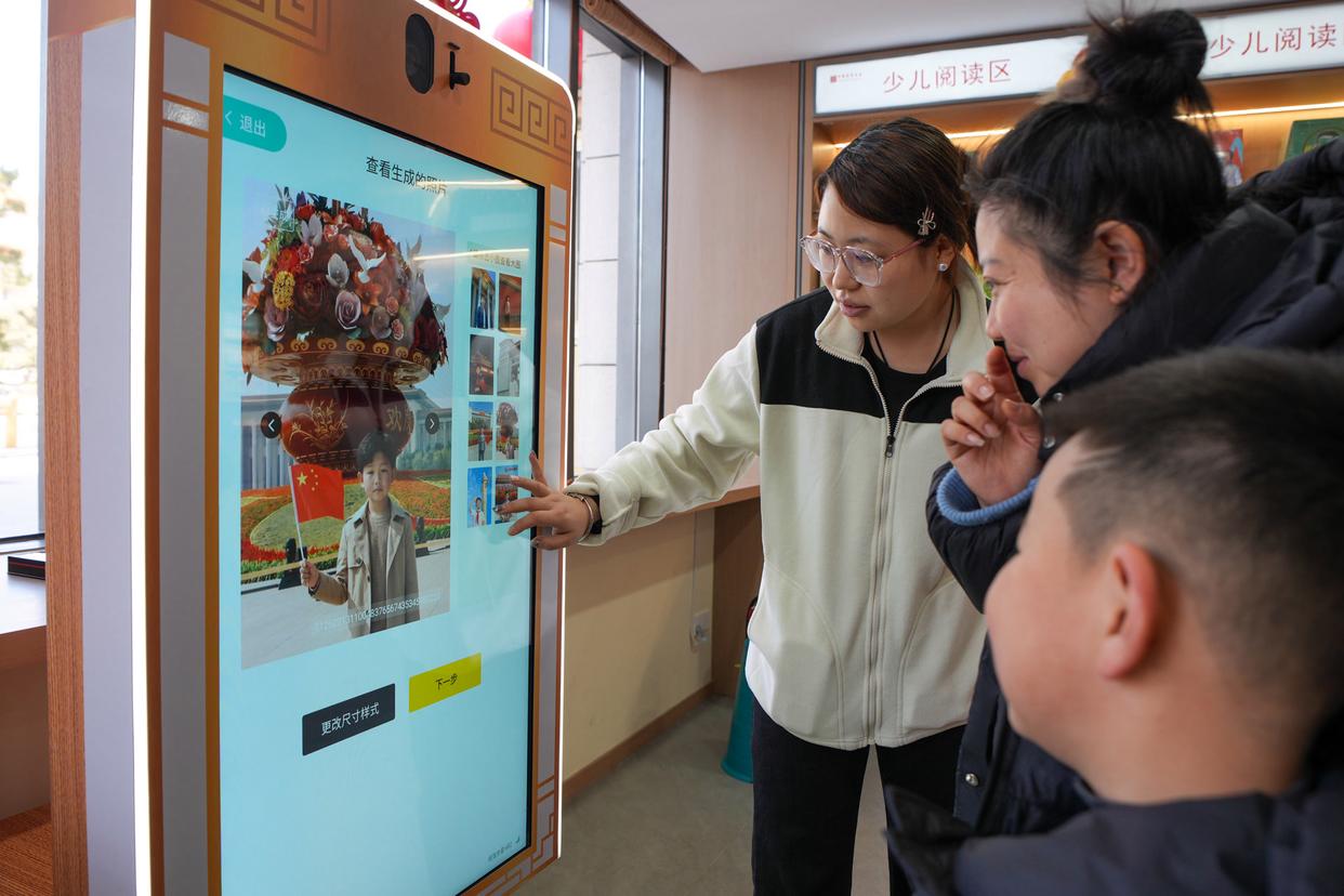 来天安门参观打卡的游客总想留下一张具有纪念意义的照片。2台AI自助拍照机分别布设于天安门城楼院内东朝房天安门服务部门前、广场东侧路复合商业空间天安门红色书店内,提供AI自助拍照和广场预约参观纪念证书打印服务。记者看到,游客站在指定位置,按照屏幕提示摆好姿势,相机便会自动调整亮度并拍摄,生成多张照片,游客可任意选择与天安门城楼、华表、大花篮、红墙、国家博物馆等代表性点位同框的照片。据悉,系统后续还会根据游客反馈不断优化和完善照相效果。