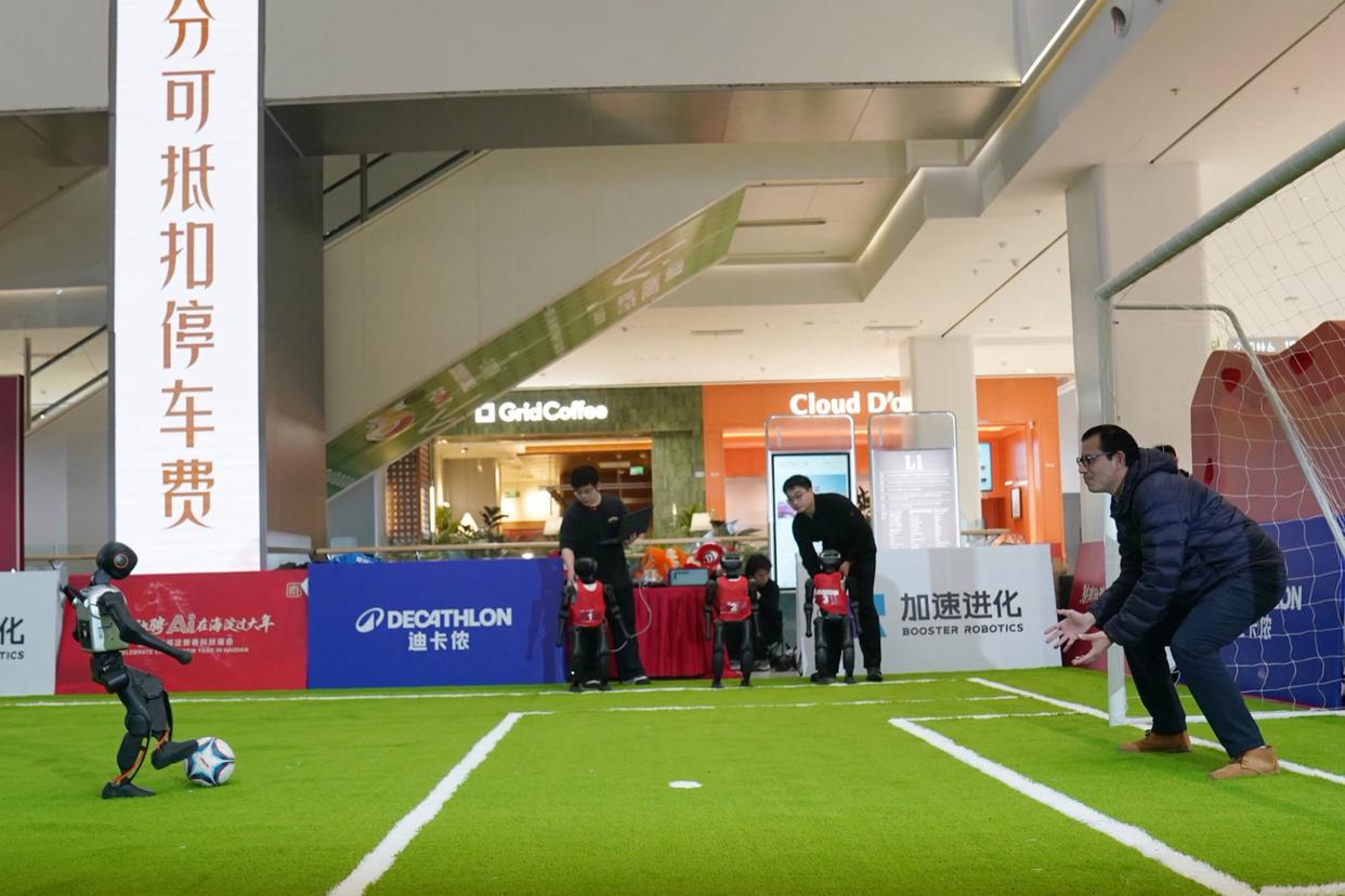 “北京正在推进建设‘全球人工智能第一城’,海淀区致力打造人工智能产业高地,在这场科技庙会上,我们希望展现海淀区人工智能企业的硬实力。”海淀区科协副主席邱峰介绍,“将科技庙会选址在商圈,人形机器人变身‘超市售货员’,体育品牌支持机器人足球赛的场地、裁判、解说需求,文商科融合,将进一步推动机器人商业化落地。”