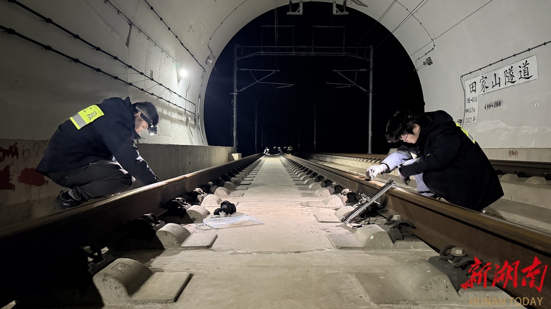 春运期间,张家界西高铁站旅客列车开行密度大幅攀升,列车进站、出站时,对站前区段钢轨产生的冲击力显著加大,钢轨伤损、隐患滋生的风险随之上升。