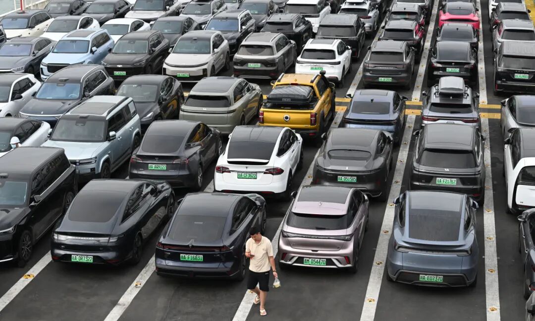 (1月30日,在海南省海口市秀英港,新能源汽车在“绿源二号”新能源汽车专用平板驳船上有序停放。图源新华社)