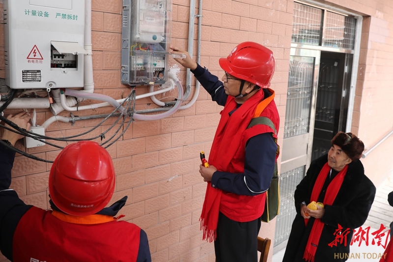 2月13日,龙山县石羔敬老院,国网龙山县供电公司东方红(国强)共产党员服务队队员在排查用电隐患。春节前夕,服务队主动上门,在为老人们送上节日问候的同时,全面检查用电安全,守护平安春节。田良东 唐荣沛 摄影报道(湖南图片库)