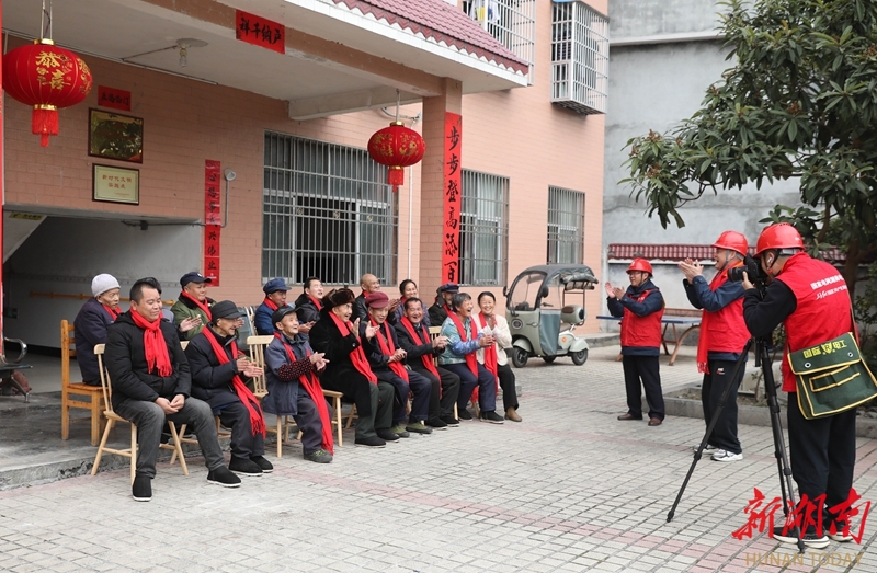 2月13日,龙山县石羔敬老院,国网龙山县供电公司东方红(国强)共产党员服务队队员为老人拍摄全家福。春节前夕,服务队主动上门,在为老人们送上节日问候的同时,全面检查用电安全,守护平安春节。田良东 唐荣沛 摄影报道(湖南图片库)