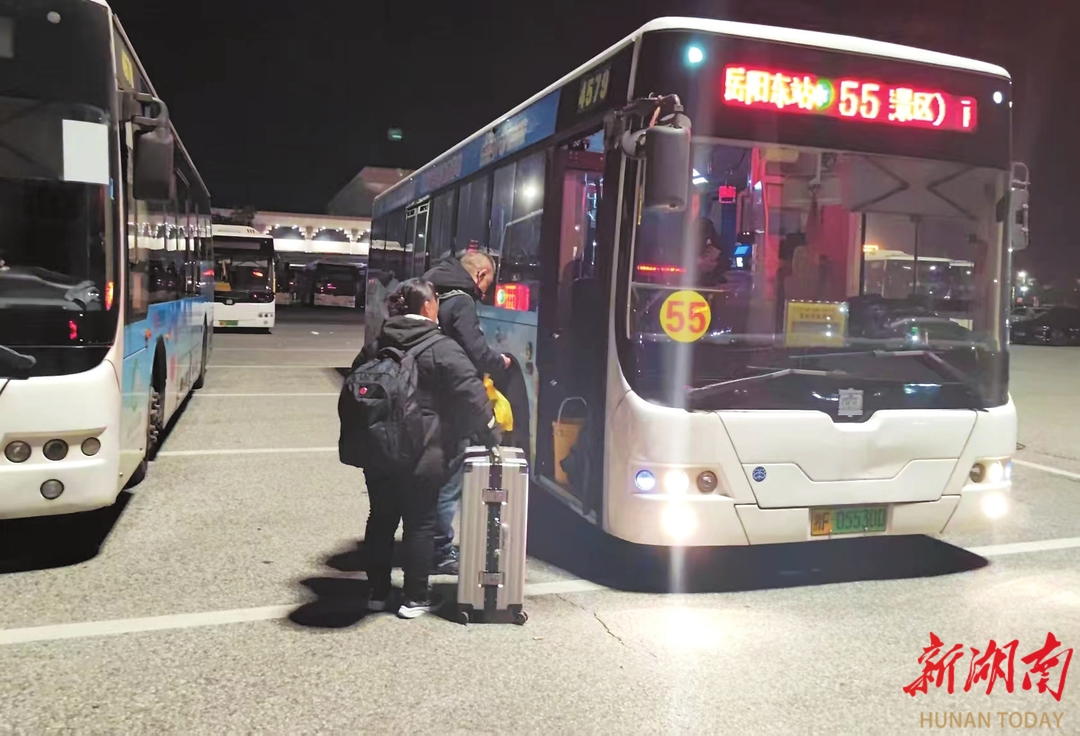 湖南日报·新湖南客户端2月14日讯(李晗妮)“没想到深夜到家,还能坐上回家直达的公交,这可不是一般的方便!”2月11日凌晨,乘高铁从深圳返乡的李女士,拖着行李,走出岳阳东站坐上55路公交车时,惊喜地说道。