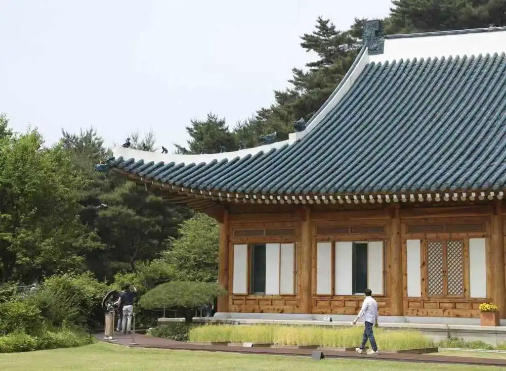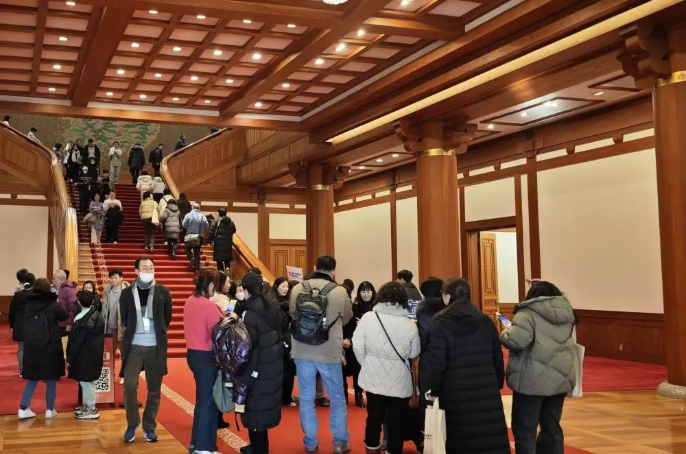 开放期间,迎宾馆、本馆、官邸等核心建筑悉数对外开放。本馆是青瓦台的核心建筑,设有总统办公室、宴会厅、接见室等功能空间。其建筑风格融汇韩国传统审美:蓝色韩式瓦片覆盖的标志性屋顶最为醒目。昔日只有外国政要、部长级以上高官方能踏入的本馆,如今成了最热门的“打卡点”。