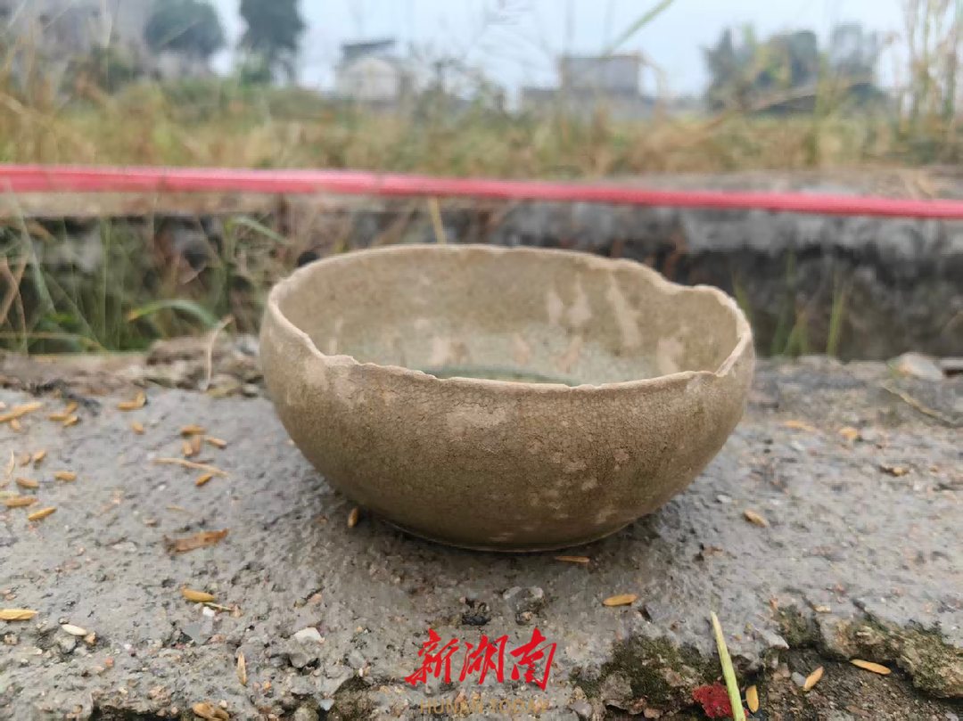 古城村村民挖池塘发现的东晋青瓷碗