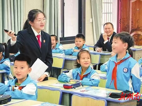“别信‘上头’多酷炫,那是毒品伪装烟,碰一口就难脱身,千万别冒险!”2025年9月4日,在临湘市第五中学教室,清脆的朗读声与热烈的掌声此起彼伏。临湘法院党组书记、院长张青以“法治副校长”身份走上讲台,为200余名师生带去了一堂通俗易懂又发人深省的法治课。此次授课通过网络直播同步开展,覆盖全市近6万名师生。