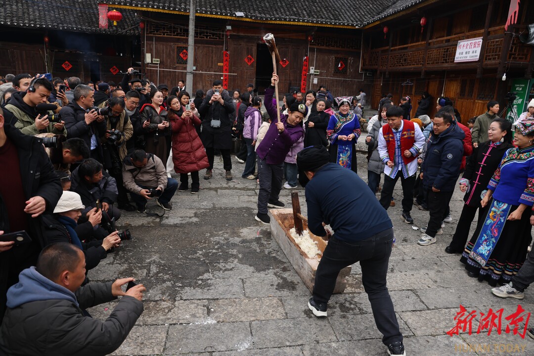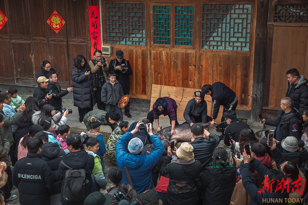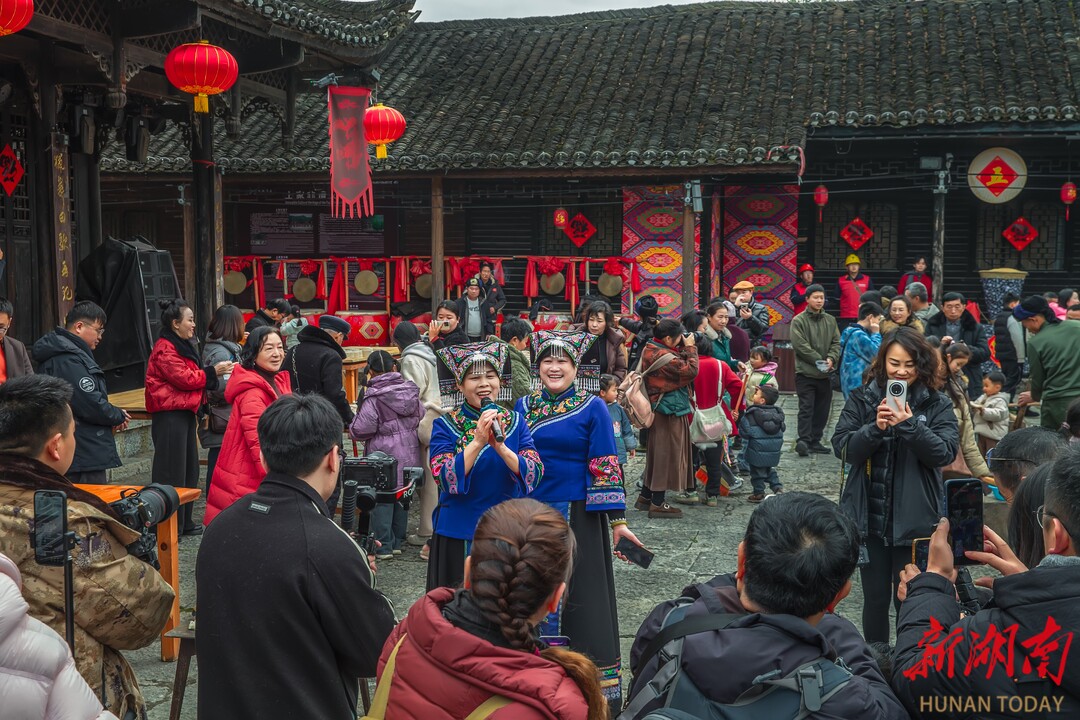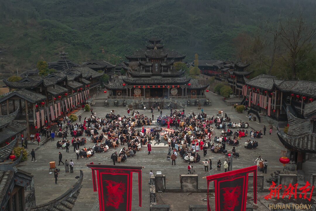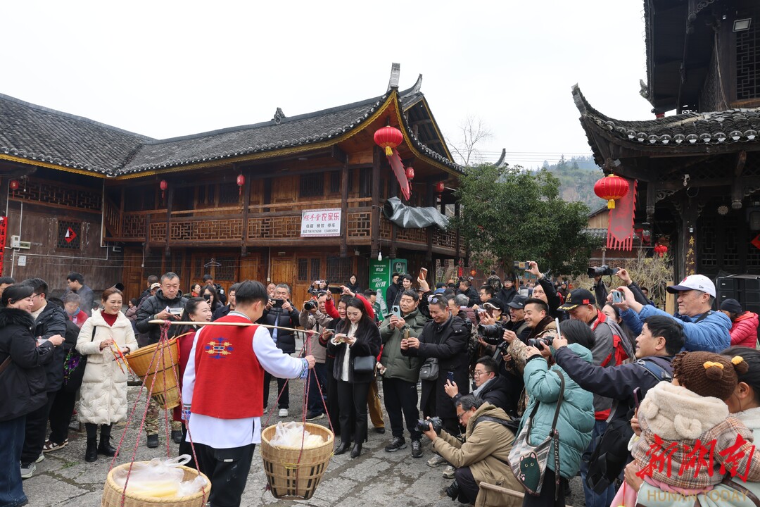 2月10日,农历腊月廿三,湘西土家族苗族自治州龙山县惹巴拉古寨处处张灯结彩,洋溢着喜庆氛围。2026年“神秘湘西过大年·别样龙山闹新春”系列活动——惹巴拉“快乐土家年”活动在此举行。来自各地的游客汇聚于此,沉浸式体验土家年俗,在烟火气息中感受浓浓的年味。