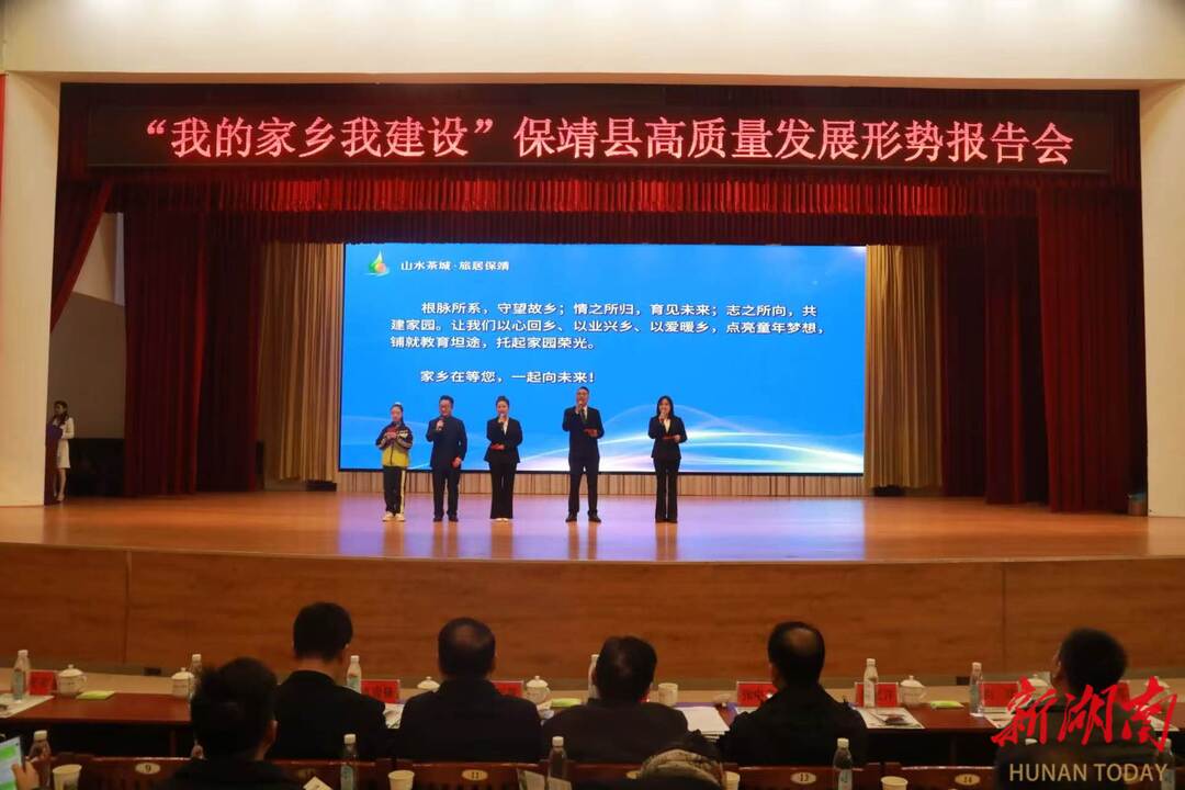 高质量发展形势报告会上,县委主要领导系统介绍县情、分析发展机遇、推介重点项目,并向在场本土人才发出诚挚邀请:“我的家乡我建设,我为家乡献一策,我爱保靖我的家!”