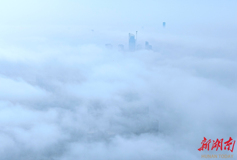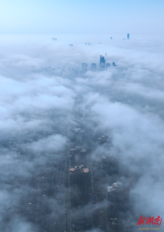 2月14日清晨,长沙城上空云雾缭绕,宛如“人间仙境”。远处高楼在雾中若隐若现,构成一幅静谧而壮美的城市画卷。 湖南日报全媒体记者 李健 摄