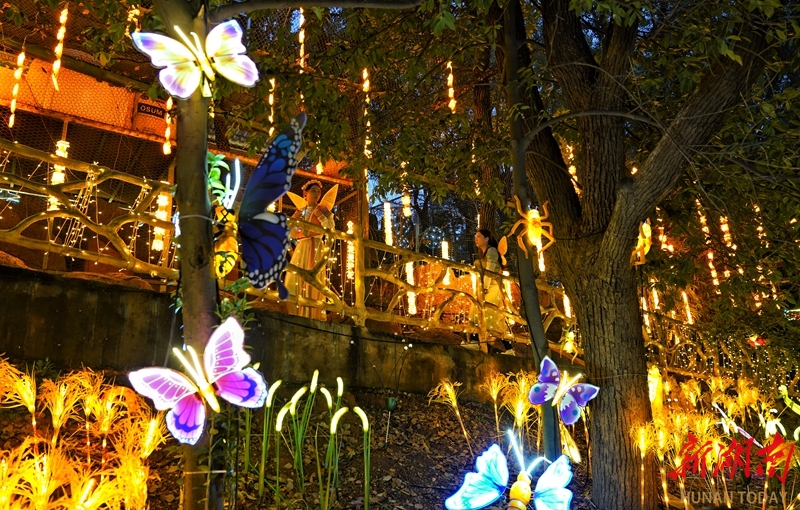 2月14日晚,游客在长沙南郊公园赏灯休闲。春节期间,该园举办“千灯之夜”主题新春灯会,星光隧道、昆虫秘境、彩灯星河、光影森林等主题灯组璀璨夺目,为市民呈现了一场流光溢彩的视觉盛宴,营造出浓厚的节日氛围。湖南日报全媒体记者 徐行 通讯员 徐玉红 摄影报道