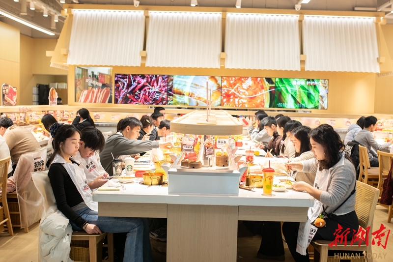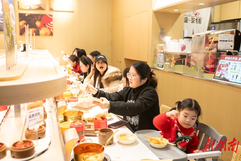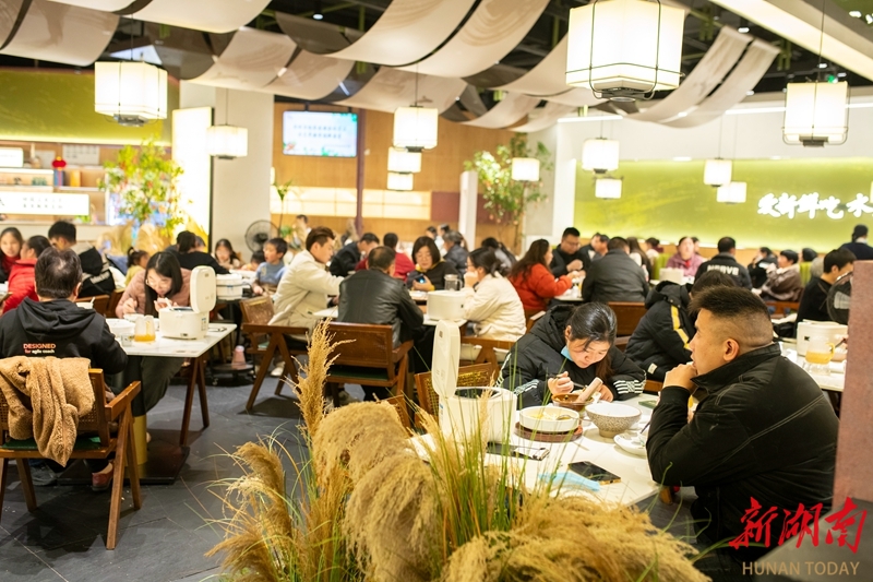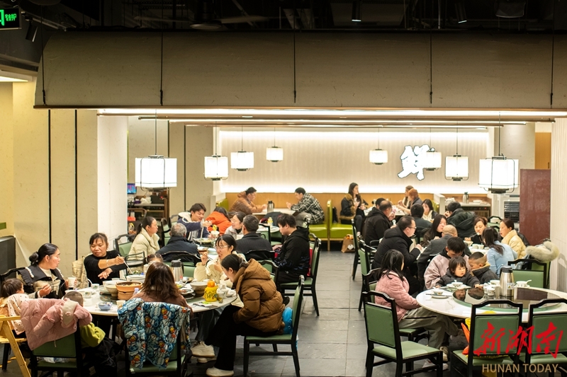 2月14日,娄底市娄星区万豪城市广场,市民在餐厅用餐。春节临近,该区各大商圈推出多样促销,餐饮等消费场所客流显著增长,呈现红火的节前消费景象。吴永华 摄(湖南图片库)