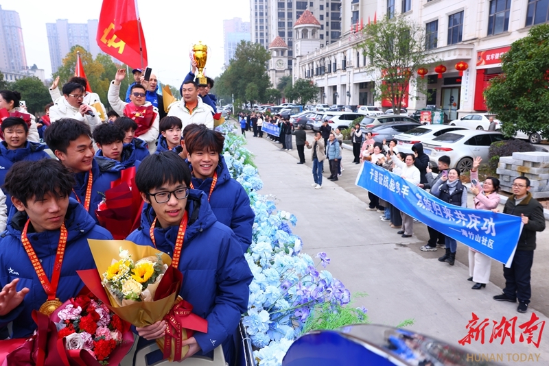 2月14日,东安县举行“荣耀归来、共筑梦想”花车巡游活动。在新疆“吐鲁番贺岁杯”青少年足球邀请赛中夺冠的东安少年,乘坐花车接受家乡人民的欢呼与祝贺。这场巡游定格了少年的荣耀,也见证了湘疆两地的深厚情谊。严启城 严洁 摄影报道(湖南图片库)