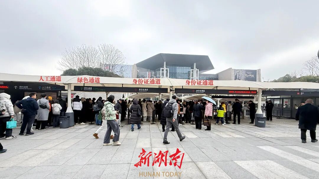 2月14日,湘博门前人潮涌动,不久前新建成的文化石吸引了很多人打卡。湖南日报·新湖南客户端记者在其周边实地走访了解到,大部分餐饮店铺与该馆开放时间同步,少数店铺甚至整个假期不打烊、24小时营业。