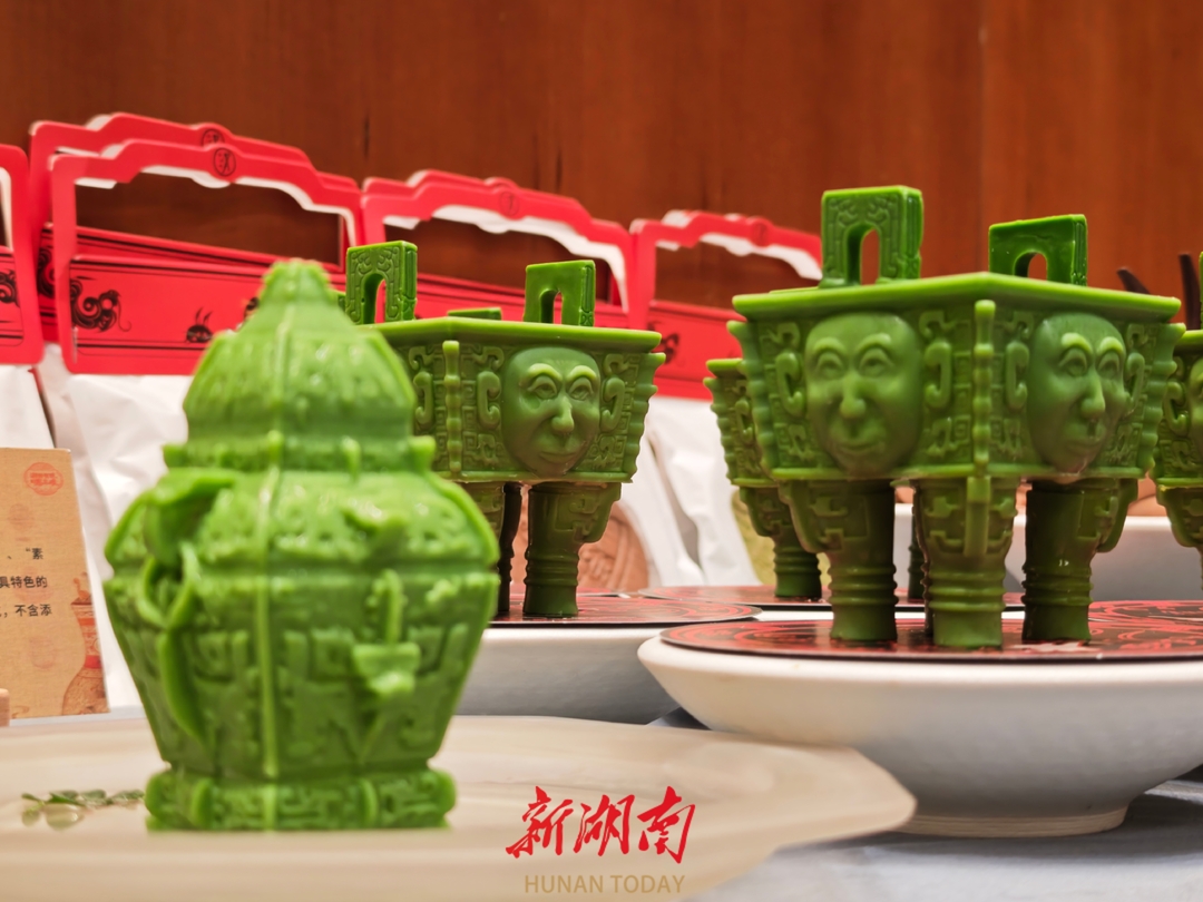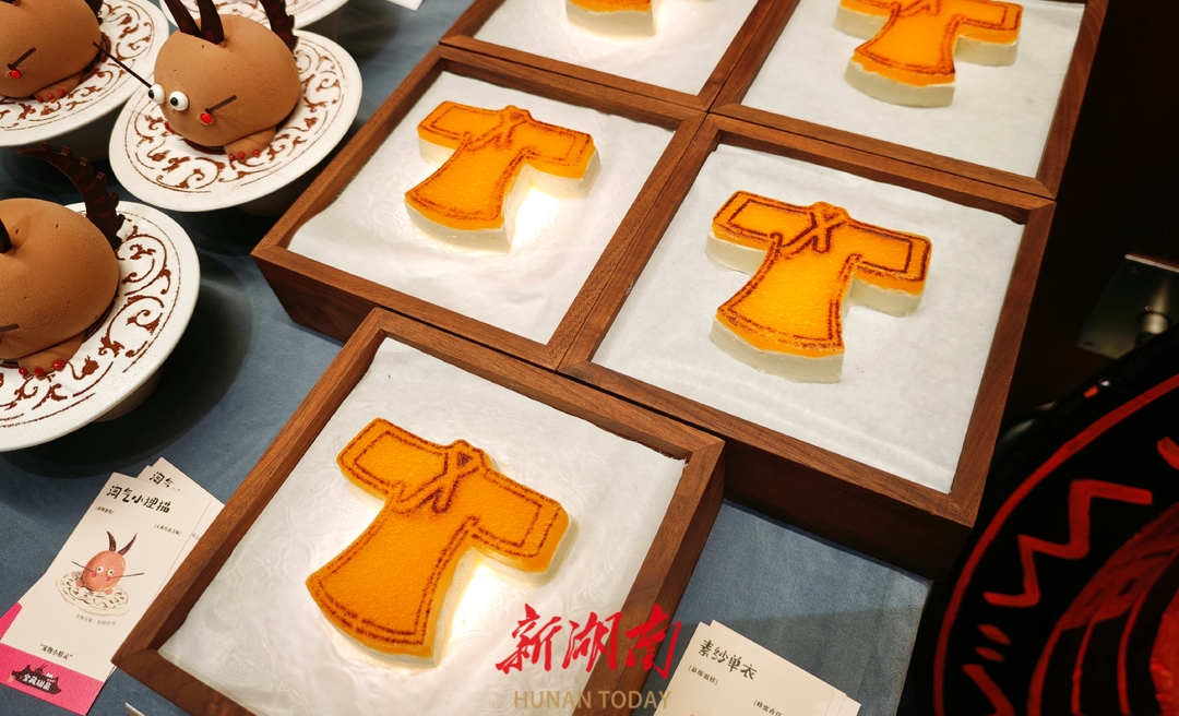 在湘博4楼的餐厅内,皿方罍、素纱单衣、汉代漆盘上狸猫图案等精品文物元素造型的甜品和君幸食咖啡,好看又可口。冰箱贴、笔记本、橡皮、斜挎包等实用文创产品,让你把美好文化体验带在身边。