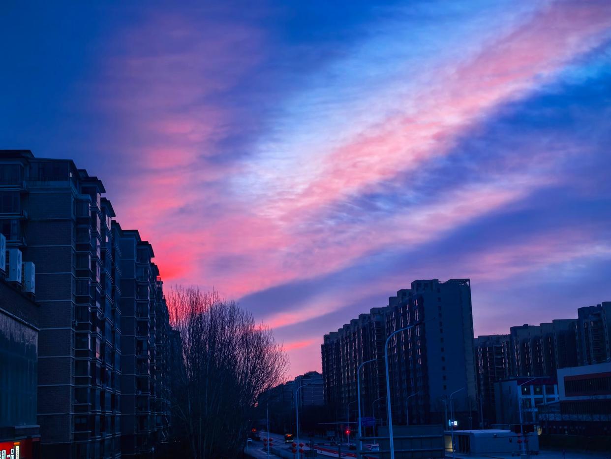 2月15日,北京。春节假期第一天就有超美的朝霞!红的似火,粉的像糖,橙的如橘,各种色彩把春节的氛围直接拉满啦!