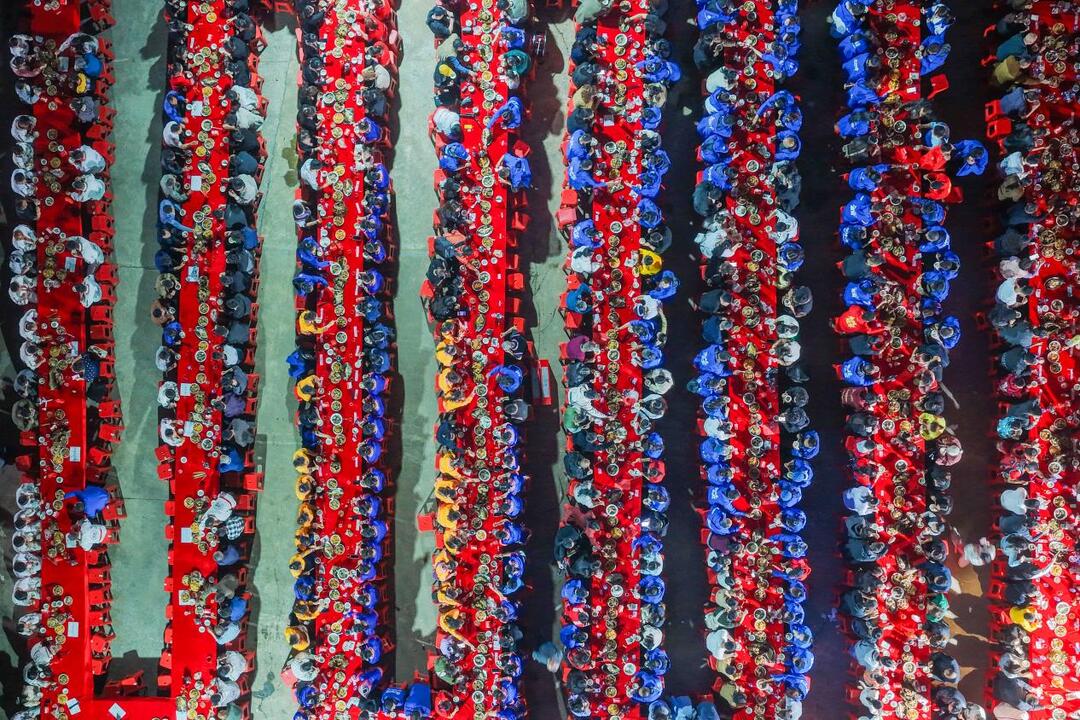 18时30分,百桌千人神龙宴准时开始,荷叶粉蒸肉、瑶家十八酿、瑶家腊肉……一道道美食让村民和游客品尝了瑶家美味,感受了千人长桌宴的热闹气氛。长桌宴后的篝火晚会让整个神岗村变成了欢乐的海洋。