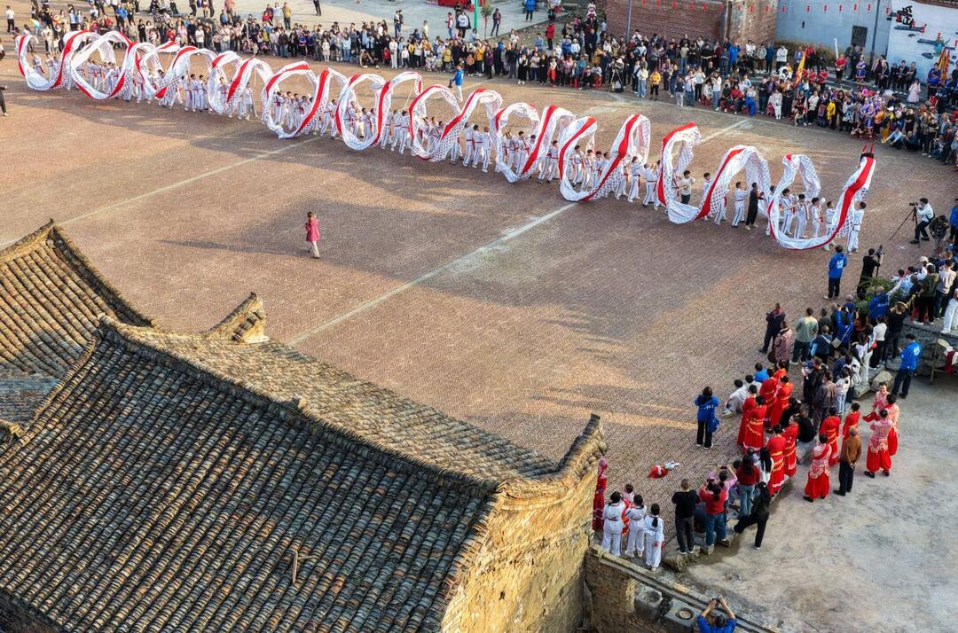 活动以隆重的“白黄青龙三年两会祭拜仪式”为开端,108名青壮少年举着长龙到村口迎接来自全县各地的黄龙、青龙入村,在村里的白龙庙举行古龙的祭龙仪式,祈求风调雨顺、国泰民安。青砖灰瓦的古村落,在百米长龙的映照下,格外漂亮!锣鼓声、鞭炮声、欢笑声交织成最浓郁的年味。