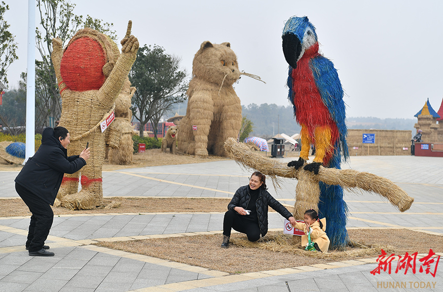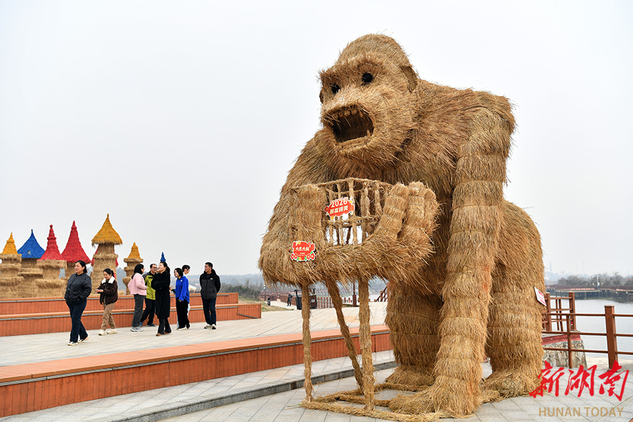 2月15日,岳阳市屈原管理区河泊潭文化旅游区,游客在参观稻草人艺术装置。当天,2026年河泊潭新春民俗游园会暨稻草人艺术节正式开幕。30组以农业废弃物制作的巨型稻草人艺术装置惊艳亮相,为游客带来沉浸式新春体验。 湖南日报全媒体记者 田超 摄