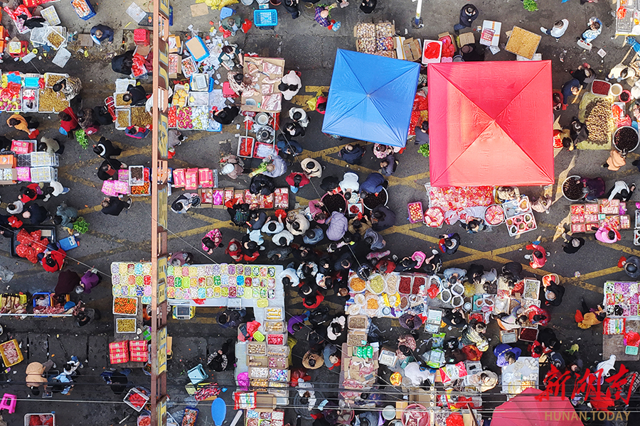 2月15日,嘉禾县行廊农贸市场,人声鼎沸,热闹非凡。春节临近,该县各地乡村农贸市场内年货物资丰富,购销两旺,洋溢着喜庆祥和的春节氛围。 黄春涛 摄(湖南图片库)