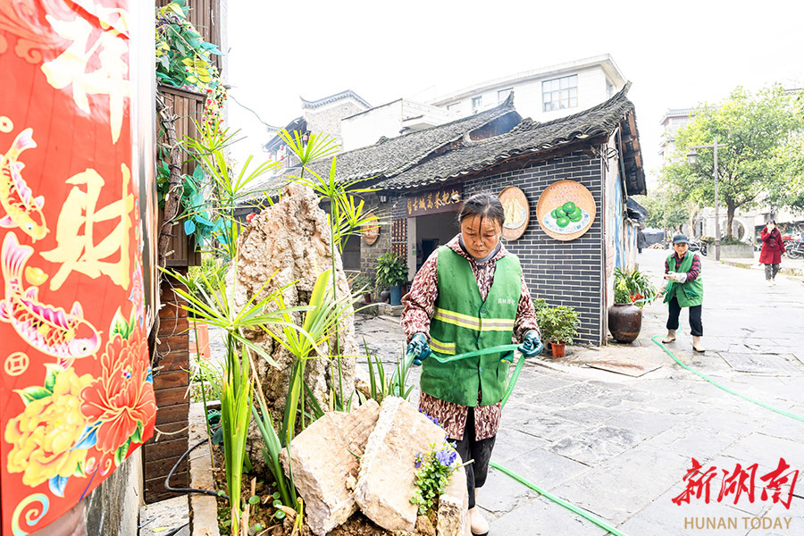 2月15日,吉首市乾州古城,园林工人在给花草树苗浇水。当天,春节假期首日,各行业工作者坚守岗位,保障城市有序运转。 梁永鸿 摄(湖南图片库)