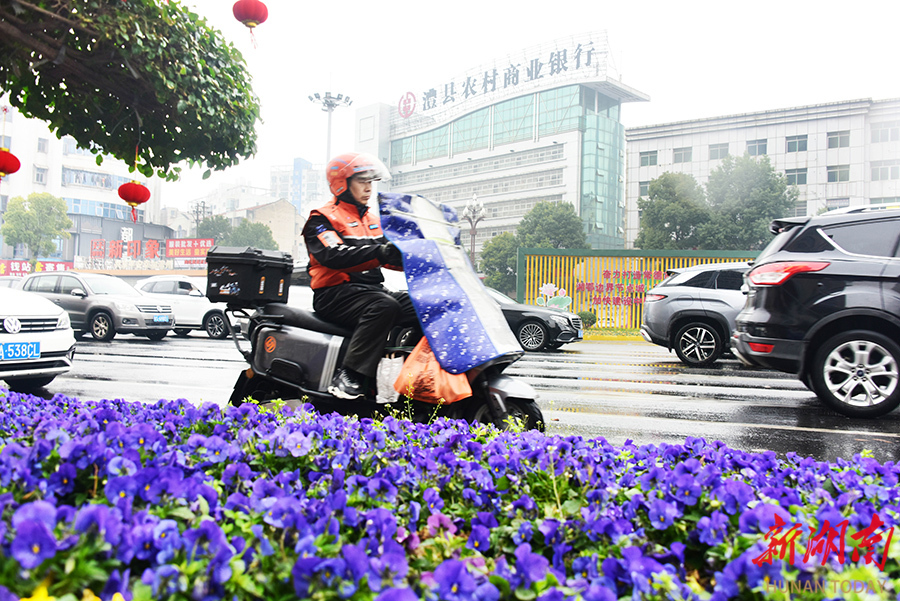 2月15日,澧县津澧大道北门口段,外卖员在骑车送件。当天,春节假期首日,各行业工作者坚守岗位,保障城市有序运转。 柏依朴 摄(湖南图片库)