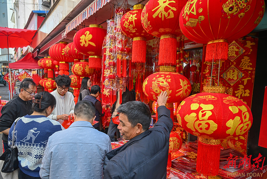 2月15日,宜章县府前街年货市场迎来节前采购高峰。春节前夕,该县市场呈现购销两旺的喜庆氛围。 湖南日报全媒体记者 郭立亮 摄